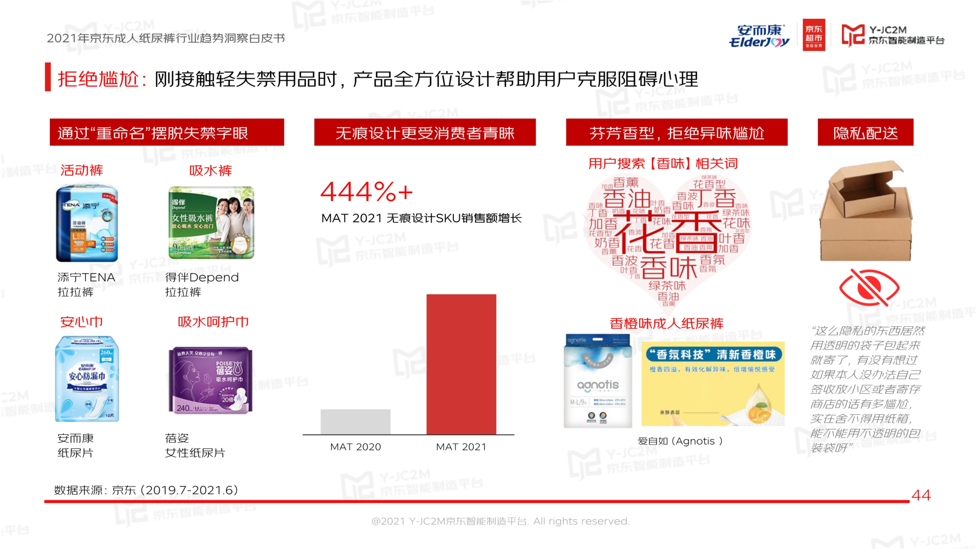 优化产品设计,以规避敏感字眼、采用无痕设计、芳香除异味等手段,帮助用户克服阻碍心理